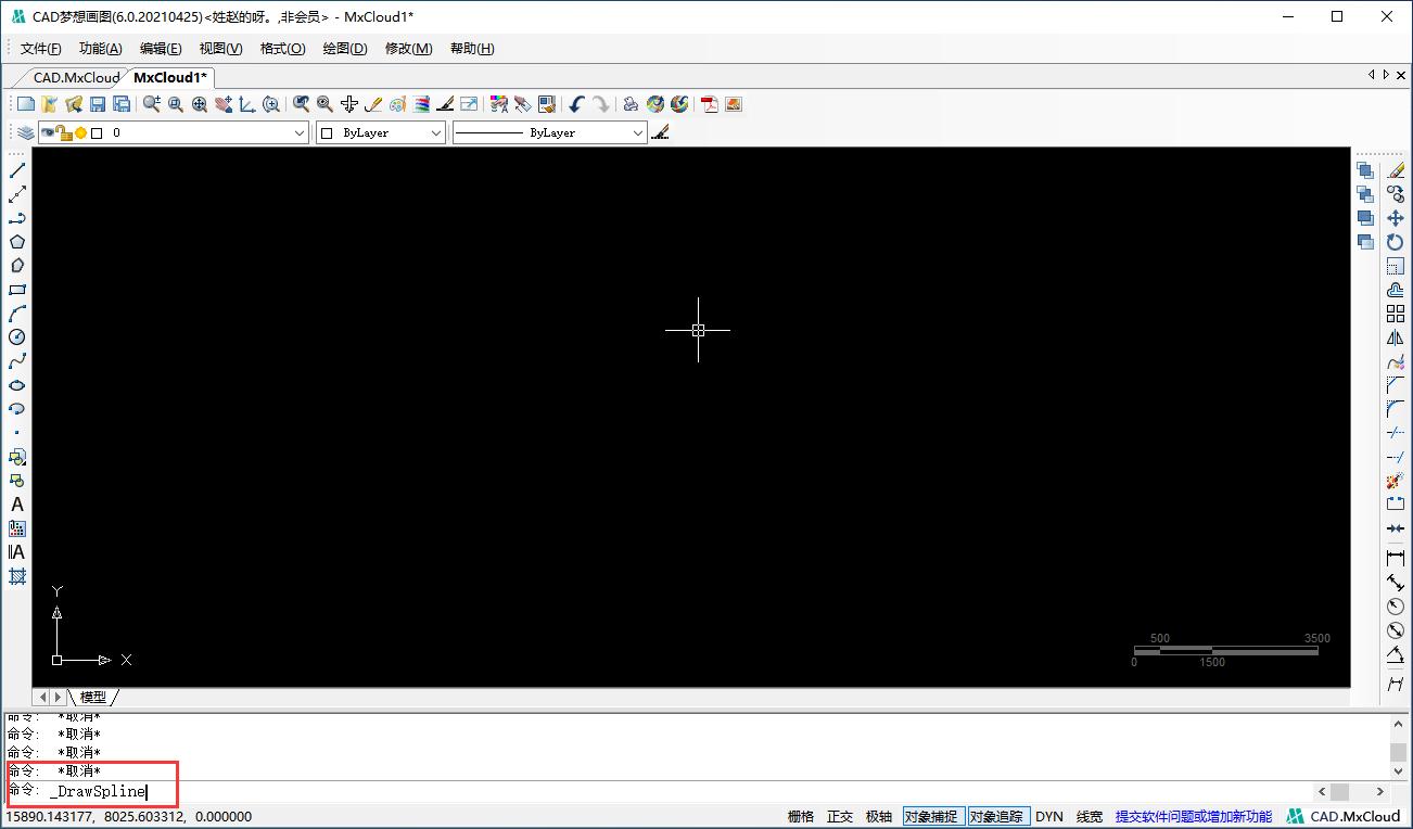 (3)在左下角命令行中输入“_DrawSpline”按enter键。如图: