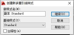 选项说明 (1)样式:显示多重引线样式列表,当前样式为蓝色显示。 (2)列出:控制样式列表的内容。单击“所有样式”可显示图形中所有可以用的多重引线样式,单击“正在使用的样式”仅显示被当前图形中的多重引线参照的多重样式。 (3)预览:显示当前选择的引线样式的预览图。 (4)置为当前:将样式列表中所选定的样式设置为当前样式。 (5)新建:显示下图所示的“创建新多重引线样式”对话框,从中可以定义新多重引线样式。