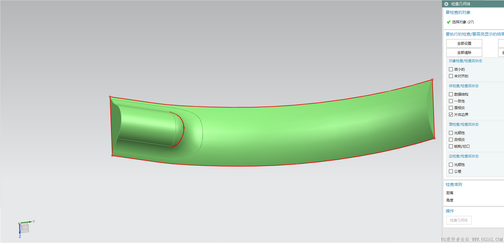 大泥神 发表于 2025-5-26 13:26 不知道你为啥检查几何体检查起来没有错误,我这里是这样的,小的那块取消缝合后删掉,曲线网格重新做个面就 ...